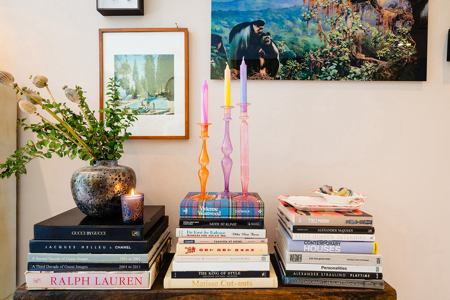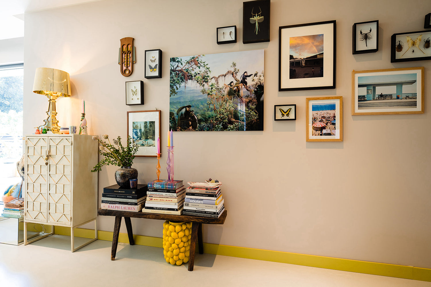 Für seine Gallery Wall hat sich Martin Schmieder für den Farbton NO 33 GLOBAL GYPSET entschieden – ein warmes Grau-Rose, das je nach Lichteinfall changiert. Mit viel Liebe zum Detail kombiniert er vielfältige Dekoelemente und Kunstwerke.
