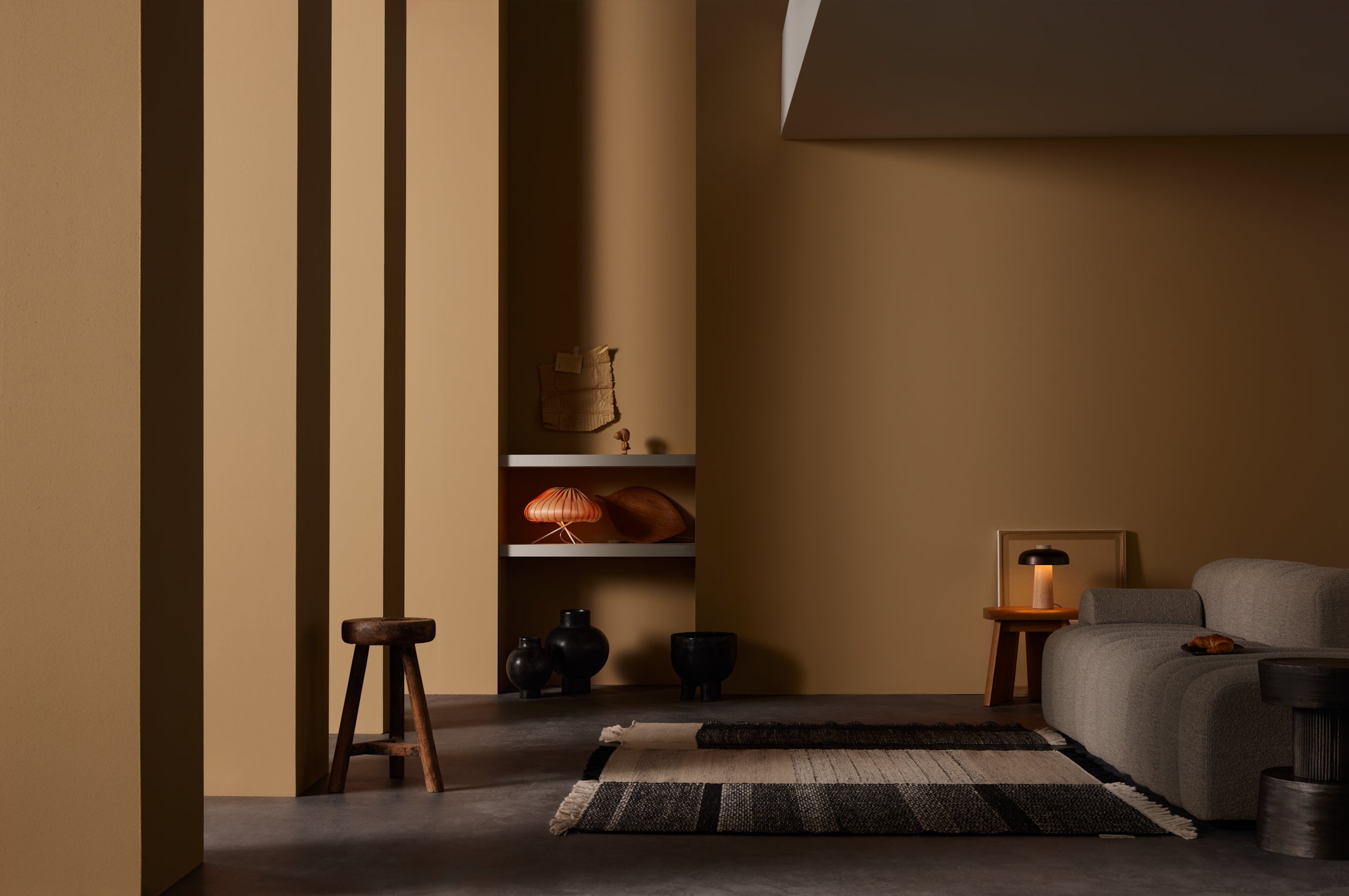 Diese Nuance wurde von recyceltem Packpapier und nachhaltigen Kartonagen inspiriert. Ein harmonischer Farbton, der sich für verschiedenste Raumarchitekturen eignet. In den USA wird in den Papiertüten Alkohol versteckt, so kennen wir das „brown bagging“ aus unzähligen Filmszenen. Auch die Skizzen, Modelle und Fundstücke von Sebastian Herkner lagern archiviert in unzähligen Kartons und dienen sowohl als Inspiration als auch als Tagebuch.