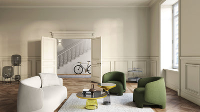 Ein klassischer Vanille-Ton. Die ausgewogene Mischung von goldgelben Pigmenten und Champagnerkreide verstärkt den natürlichen Lichteinfall und lässt Räume hell erstrahlen.