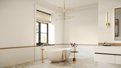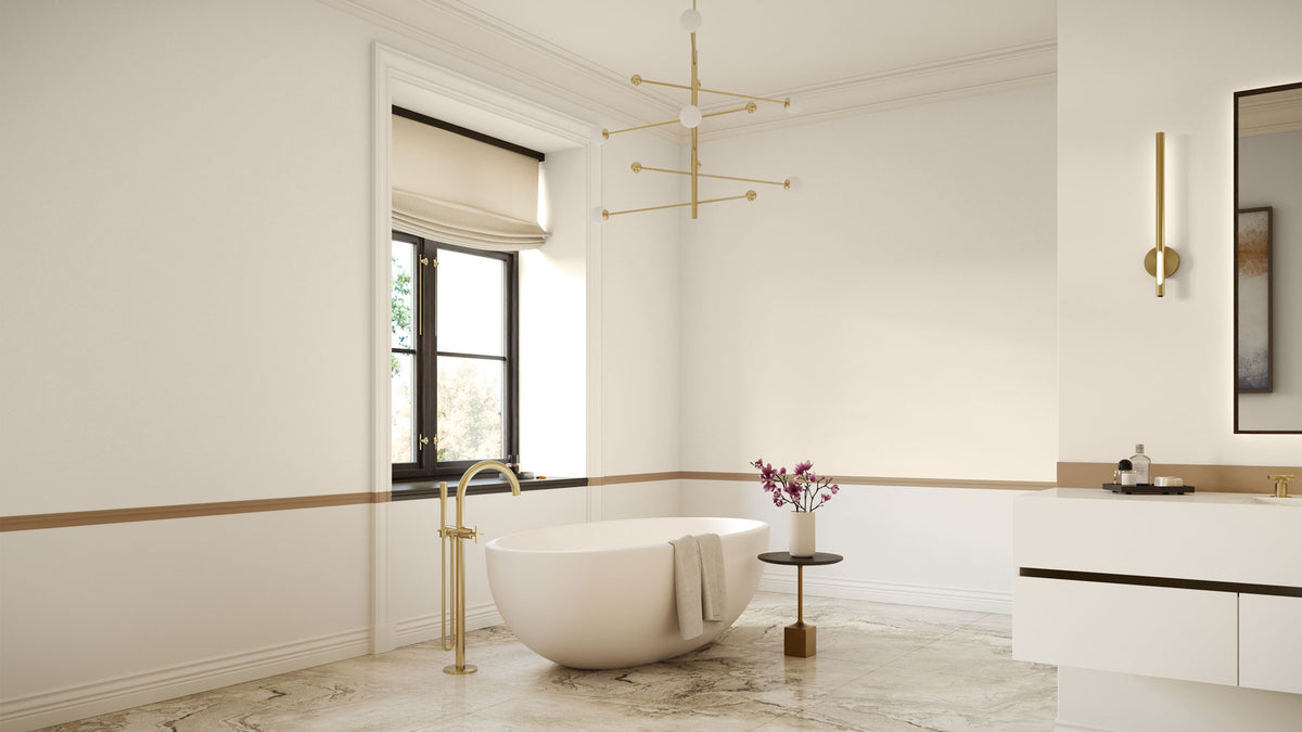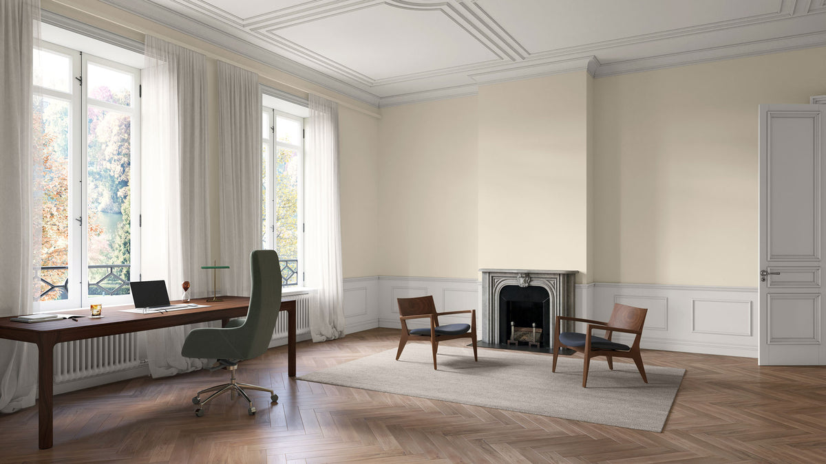 Sanft gebrochenes Warmweiß. Swan wird wie ein Hauch von Licht wahrgenommen, daher ist er als Grundton an Wänden und Decken durchgehend gestrichen universell einsetzbar.